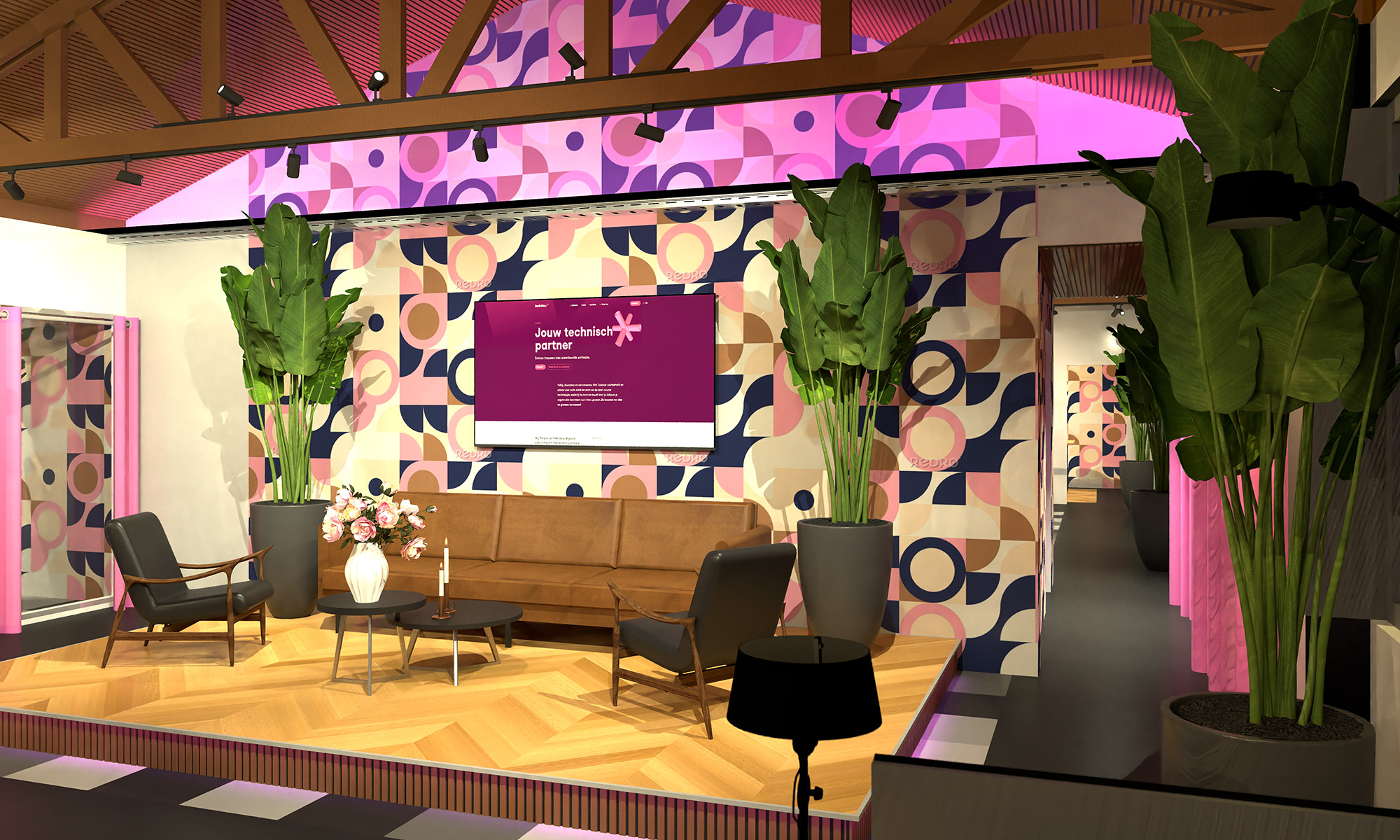 Het ontwerp laat bewust het korset van de traditionele kantooromgeving los. In plaats daarvan is een speelse, ontspannen werkomgeving ontstaan die ruimte biedt aan inspiratie, concentratie en uitwisseling, zonder hiërarchie in gebruik of indeling. Als thema is gekozen voor theater annex bibliotheek: en verbonden met de roze tint uit het brandbook van LeukeLeu, waardoor identiteit voelbaar aanwezig is.